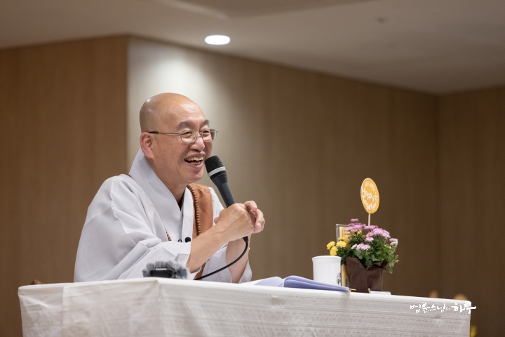 이렇게 작은 돈들이 모여서 정토회가 지금까지 유지되었습니다. 어떤 사람들은 정토회가 그 정도 규모가 되면 이제 다른 곳에 베풀 정도가 되지 않느냐고 생각할지 모르지만, 저희들은 돈을 쓰는 게 조금 인색합니다. 대신 굶어 죽는 곳에는 수십억 원도 지원합니다. 북한 난민이 굶어 죽는다거나, 로힝야 난민에게 가스스토브를 지원할 때는 큰돈도 지원하지만, 저희를 위해서는 거의 돈을 안 씁니다. 정토회는 재벌 기업에게서 큰돈을 보시받은 적도 없고, 정부로부터 지원받은 적도 없습니다. 정토회의 재정은 100퍼센트 회원들의 회비와 보시로만 이루어집니다. (모두 박수)