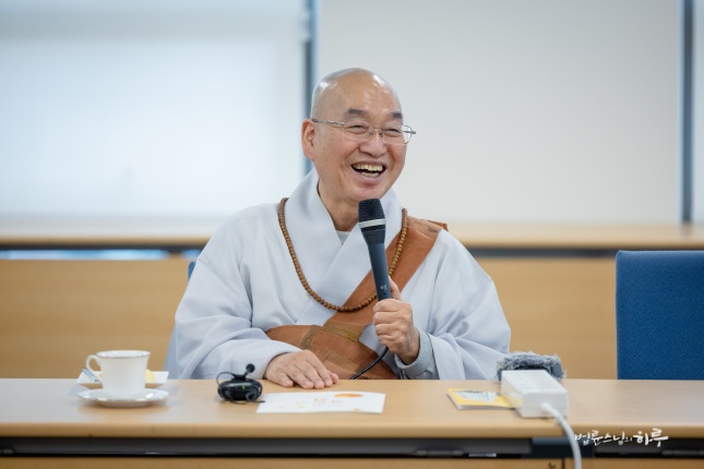 이어서 질의응답을 시작했습니다. 정토회 2차 만일결사의 방향과 목표가 무엇인지, 법당을 다 없애고 온라인 법당으로 전환한 이유가 무엇인지, 30년 만일결사를 다 한 사람은 얼마나 되는지, 법륜 스님 입적 후 정토회는 어떻게 될 것인지, 한국 불교가 위축되지 않는 방법은 무엇인지, 경색된 남북 관계가 어떻게 하면 재개될 수 있는지 등 과거보다는 미래의 방향에 대한 질문이 많았습니다.