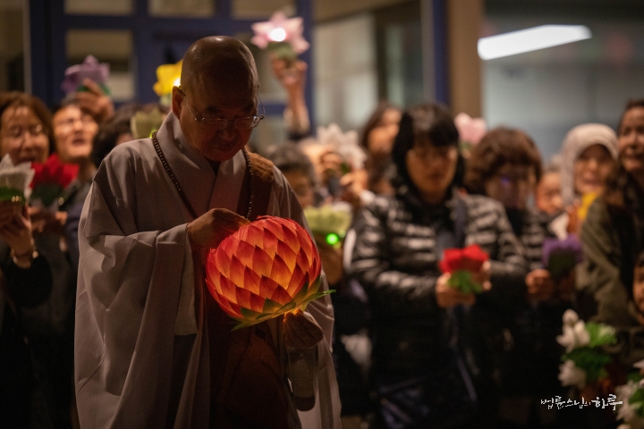 이런 뜻을 알고 오늘 점등식에 모두 기꺼운 마음으로 참여하여 연등을 밝혀 주시기 바랍니다.”