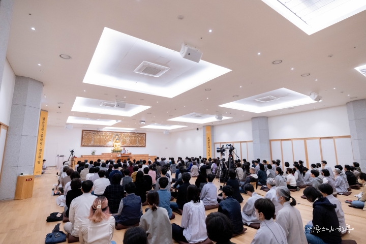 학생들은 스님과의 대화를 통해 그동안 궁금했던 내용들을 하나씩 해결할 수 있었습니다. 질문한 학생들과 대화를 끝내고, 스님은 불교대학 과정을 끝까지 해볼 것을 독려하며 법문을 마쳤습니다.