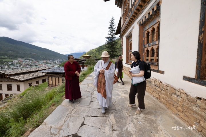 “스님, 국왕께서 비구니 재단에 묵으셔도 괜찮은지, 더 좋은 호텔로 모셔야 하지 않느냐고 여쭈어 보았습니다. 비구니 재단 숙소가 가파른 곳에 있어서 오르내리는 길이 힘들다고 걱정하셨습니다.”