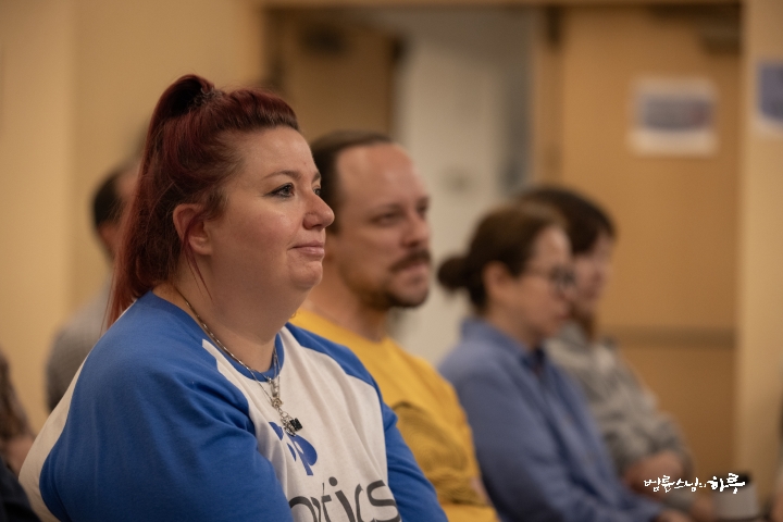 요즘은 한국인뿐만 아니라 외국인들도 영어로 번역이 된 즉문즉설과 불교대학 공부를 하고 있기 때문에 강연에 참석하는 외국인들도 점점 많아지고 있었고요. 특히 교포 2세들의 경우 스님의 법문을 통해 부모와 교감하는 모습도 볼 수 있었습니다.