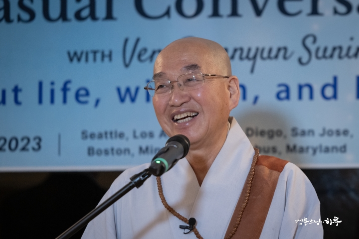 이 외에도 여러 가지 질문들이 계속 이어졌습니다. 스님이 대답하면 질문자들이 곧바로 알아들어서 빠른 속도로 즉문즉설이 진행되었습니다.