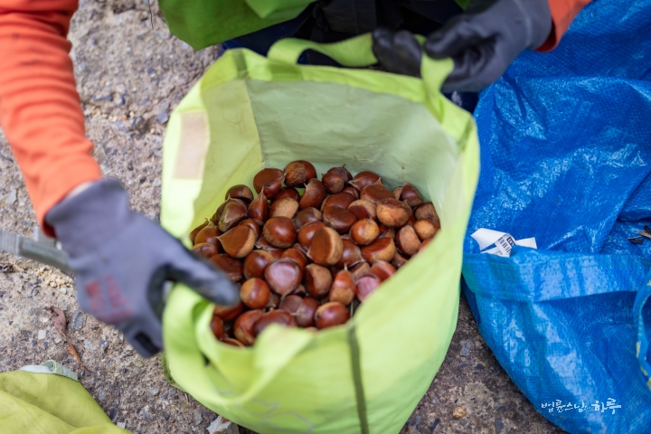 “밤이 별로 없네요. 사람들이 밤을 주워갔으면 빈 밤송이라도 많아야 하는데, 밤송이도 별로 없네요.”