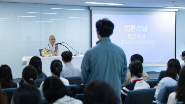 이어서 즉문즉설 시간을 가졌습니다. 누구든지 자유롭게 손을 들고 스님과 대화를 나누었습니다. 먼저 첫 번째 질문자가 손을 들고 스님에게 질문을 했습니다.