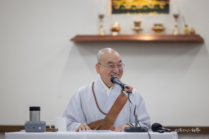 점심 식사를 마치고 모두 대강당에 모여 스님과 즉문즉설 시간을 가졌습니다. 스님은 환한 웃음을 머금으며 대화를 시작했습니다.