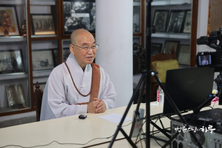 건물에 도착해서 법당에 인사를 드리고 영상팀이 준비해 놓은 카메라 앞에 앉았습니다.