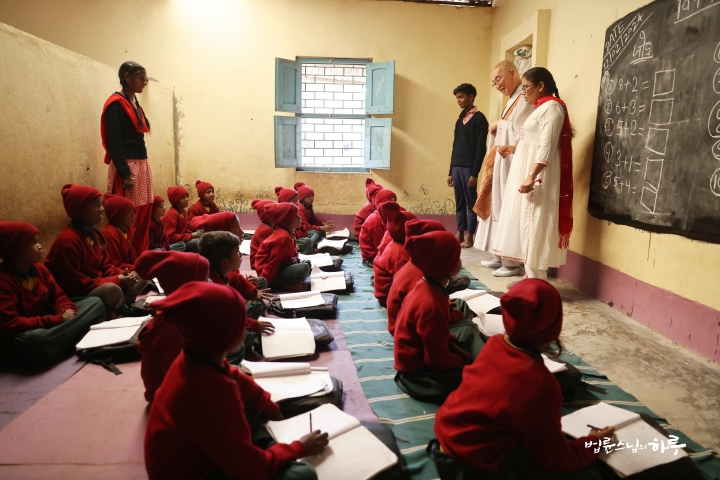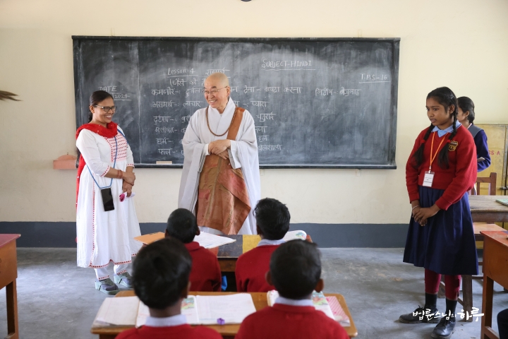 스님은 법회를 마치고 곧바로 수자타아카데미로 향했습니다. 학생들이 하나둘 등교하고 있었습니다. 스님은 교사들과 인사를 나눈 후 1학년 교실부터 차례로 둘러보았습니다.