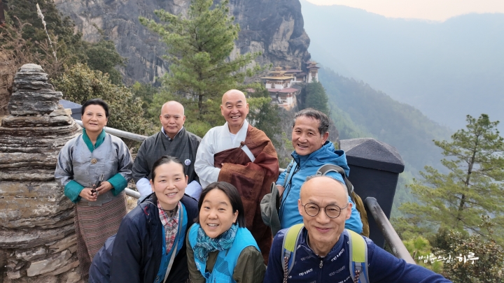 부탄의 국제공항이 위치한 파로 시내에서 10km 북쪽으로 올라가자 호랑이가 나올 법한 웅장한 계곡이 나타났습니다. 차에서 내리자 파로의 주지사님이 스님과 동행하기 위해 마중을 나왔습니다.