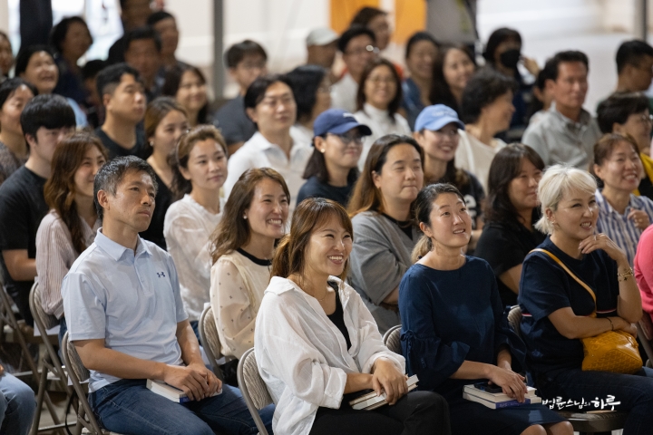 이어서 즉문즉설을 시작했습니다. 두 시간 동안 12명이 스님에게 질문하고 대화를 나누었습니다. 그중 한 명은 아내가 법륜 스님의 즉문즉설에 빠져서 함께 보내는 시간이 점점 줄어들고 있다며 어떻게 하면 예전의 즐거움을 되찾을 수 있을지 질문했습니다.