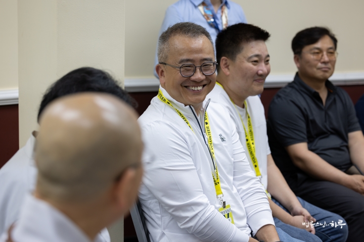 우리가 살아가는 인생도 마찬가지입니다. 어떤 상황에 처해도 사실은 다 좋은 거예요. 늘 좋음을 발견할 줄 알면 몸이 좀 고단해도 웃으면서 살 수 있습니다. 어떤 상황도 늘 부정적으로만 보면 모든 상황에서 불평할 일이 생깁니다. 오늘도 봉사를 하러 와서 ‘스님도 만나고, 사람들을 위해서 봉사도 할 수 있어서 기쁘다’ 이렇게 생각하면 웃으면서 할 수 있지만, ‘4시간 일을 하고도 돈 한 푼 못 받았다’ 이렇게 생각하면 불평불만을 늘어놓게 됩니다. 그러니 자신의 마음을 늘 행복하게 유지해 나갔으면 좋겠습니다.”