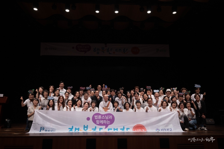 참석자들이 모두 강연장을 빠져나가고 스님은 오늘 강연을 준비해 준 대구경북 지역 행복시민들과 기념사진을 함께 찍었습니다. 모두 뿌듯한 얼굴로 '행복시민 파이팅'을 우렁차게 외쳤습니다.