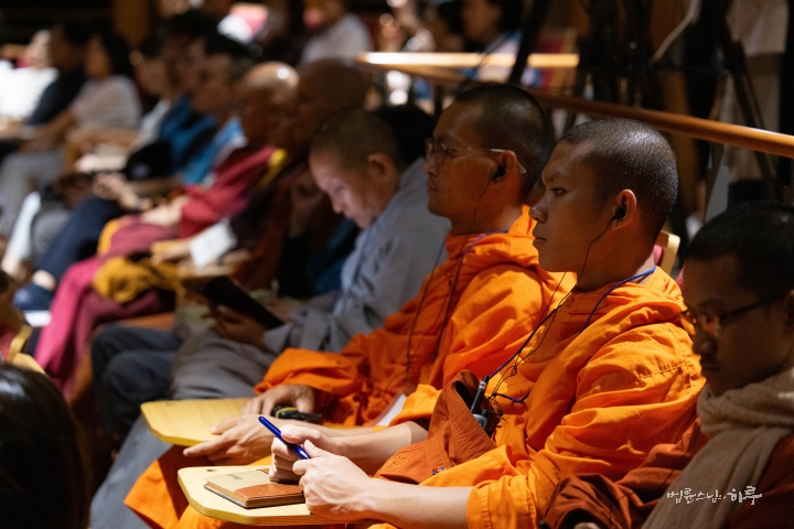 유튜브 생방송에는 6,200여 명이 접속했습니다. INEB 방문단은 청중석의 맨 뒷자리에 앉아서 통역을 통해 강연을 참관했습니다.