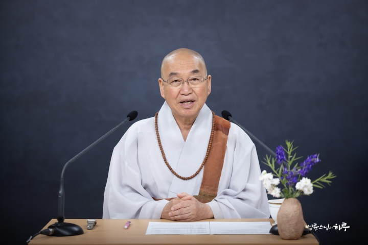 잠깐 휴식을 하고 10시부터는 정토경전대학 수업을 듣고 있는 학생들과 즉문즉설 시간을 가졌습니다. 1200여 명의 학생들이 온라인에 접속한 가운데 서로 손을 흔들어 인사를 하며 즉문즉설을 시작했습니다.