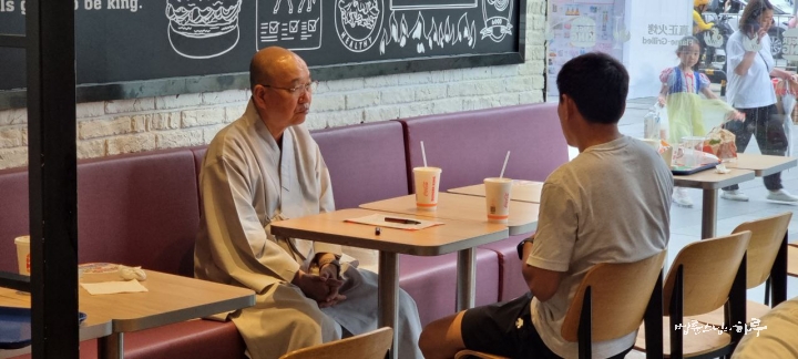스님은 중국에 와 있는 북한 노동자들의 생활 상황에 관심이 많습니다. 북한 노동자들이 중국에서 어떻게 지내고 있는지 여러 가지 대화가 오갔습니다. 북한과 중국의 무역 거래는 코로나 기간에도 변함없이 지속되었고, 국가가 필요한 물건이 거래되기도 하지만 개인이 장사의 목적으로 물건을 사들이는 경우도 많았다고 합니다. 중국에 북한 노동자들이 10만 명 정도 와 있는데 그중 5만 명이 동항 인근에 모여 있습니다. 최근 비자 발급이 까다로워져서 한 번 귀국한 이들은 다시 나오기 위한 비자 발급이 어렵고, 북한도 현금 수입 때문에 귀국을 불허하고 있어 이들은 집으로 가지 못하고 공장에서 일만 하고 있다고 합니다.