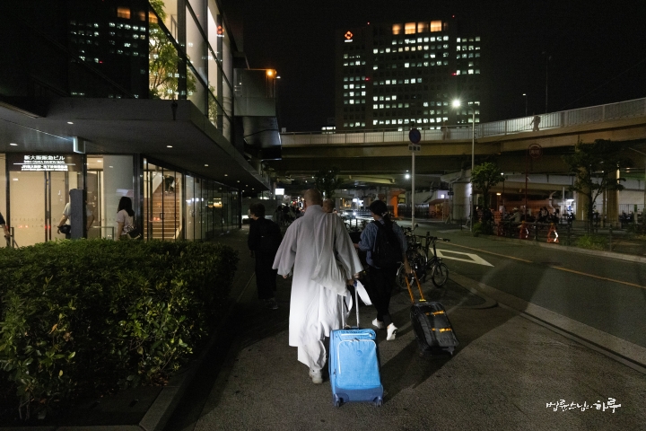 내일은 오전에 숙소에서 수행법회 생방송을 진행하고, 오후에는 일본 평화통일연합 관계자들과 미팅이 예정되어 있습니다. 저녁에는 오사카 교민들을 위한 즉문즉설을 마치고, 밤 기차로 도쿄로 이동할 예정입니다.