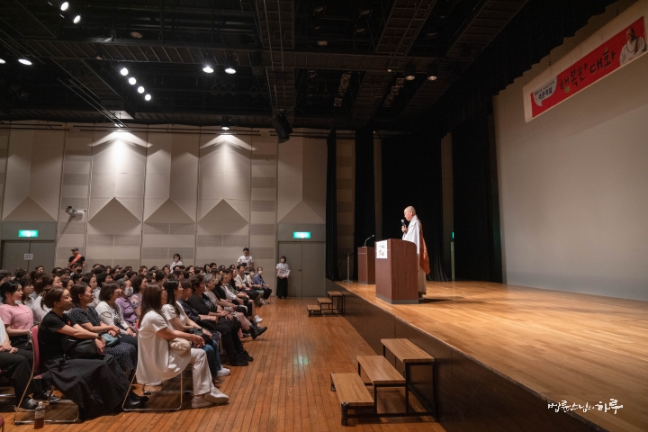 이어서 사전에 질문을 신청한 분들부터 차례대로 대화를 나누고 현장에서도 질문을 받았습니다. 두 시간 동안 여덟 명이 스님에게 질문을 했습니다. 그중 한 명은 남편이 동업을 시작한 것이 불안하며, 그로 인해 어렸을 때 동업을 해서 망한 아버지에 대한 미움이 올라온다며 어떻게 이 상황을 극복할 수 있을지 스님의 조언을 구했습니다.