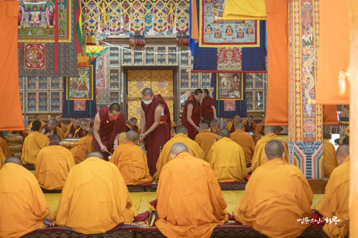 법당 안으로 들어가자 많은 승려들이 발우공양을 하고 있었습니다. 모두가 식사 중이라 법당을 참배만 하고 조용히 나왔습니다.
