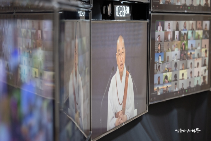 방금 소개를 들어보니 정말로 보이지 않는 곳에서 많은 사람들이 수고해 준 결과로 책, 영상, 스님의 하루가 제작되어 나온다는 걸 다시 알게 되었습니다. 상근하는 실무자가 다 만든다고 생각했는데 같이 애써주는 봉사자분들이 많이 있었구나 하고 여러분의 노고를 알게 되었습니다. 여러분들이 곧 뿌리에 해당되는 사람들입니다.