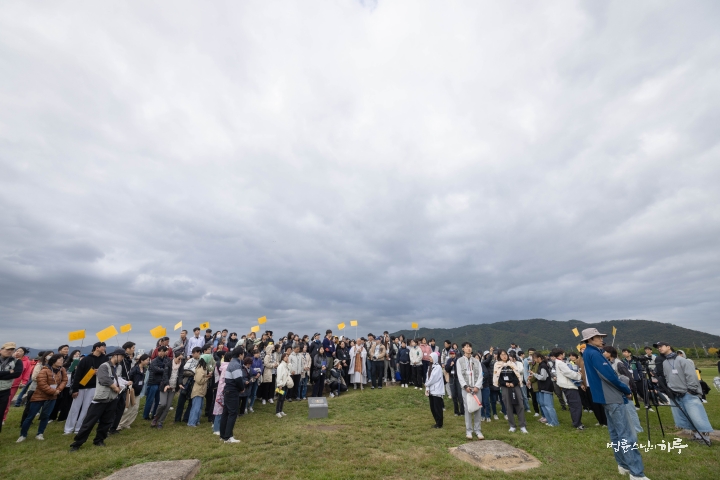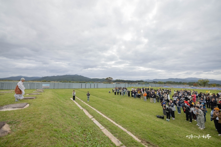 “제가 고등학교 때는 여기 분황사 마당에 멍석을 깔고 삼천배 절을 했습니다. 그래서 무릎이 까져서 피가 철철 나고 그랬어요.” (웃음)