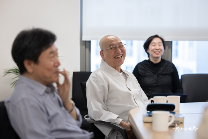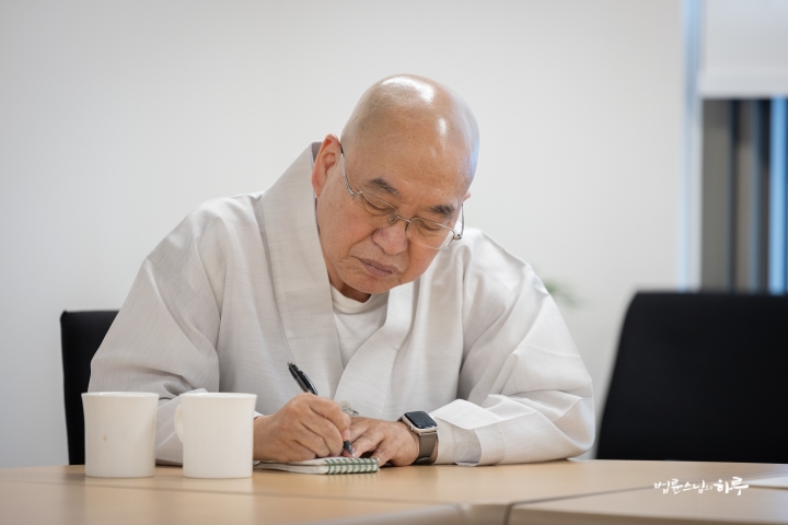 스님은 종교인분들을 배웅한 후 수행법회 생방송을 하기 위해 서울 정토회관 방송실로 이동했습니다.
