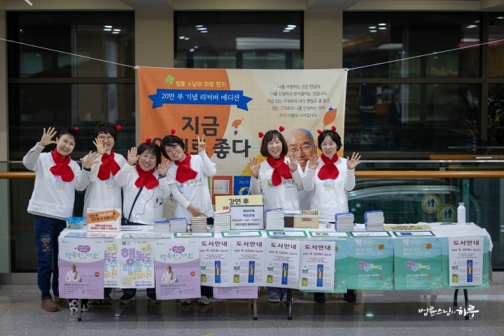 강연을 마치고 곧바로 무대 위에서 책 사인회를 했습니다. 많은 시민들이 길게 줄을 서서 스님과 인사를 나누고 감사의 마음을 표현했습니다.