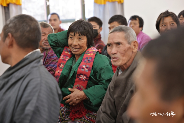 “먼저 불법승 삼보에 귀의합니다. 부처님과 보살님들의 가피로 그리고 부탄 국왕의 은혜로 숩랑치옥에 있는 여러분을 만나게 되었습니다.