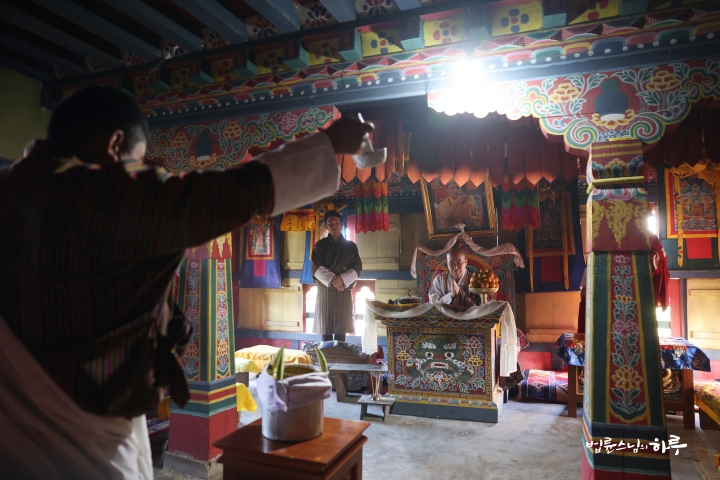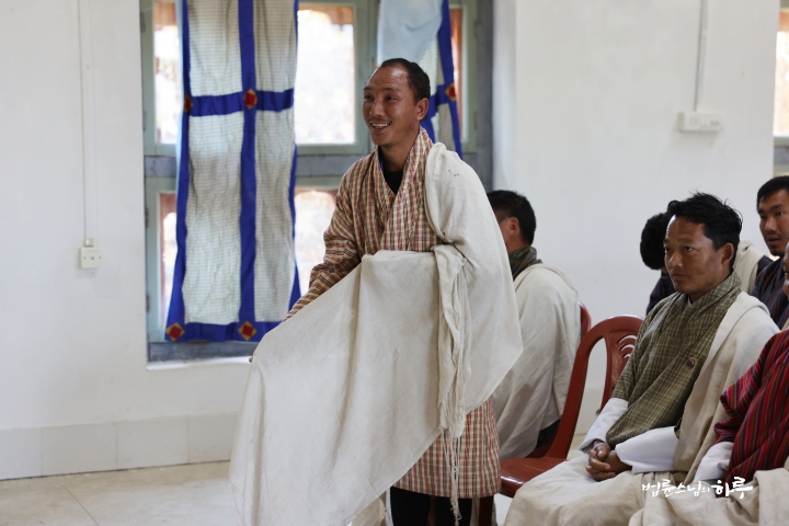 “우리가 이렇게 만나게 된 것은 부처님과 보살님들의 가피입니다 부처님의 가피가 없었다면 어떻게 저 멀리 한국에 있는 제가 이곳 부탄의 산골에 있는 좁카까지 와서 여러분을 만날 수 있었겠습니까?( 웃음)