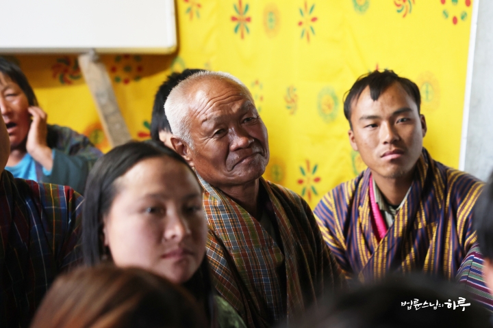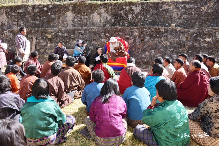 “안녕하세요. 저는 저 동쪽 멀리에 있는 한국에서 왔습니다. 여기까지 오려면 한 번에 올 수 없고, 방콕이나 델리를 경유해야 합니다. 이렇게 먼 곳에서 부탄까지, 또 부탄에서도 님숑까지 와서 여러분을 만난다는 것은 매우 깊은 인연이 있어서입니다.”
