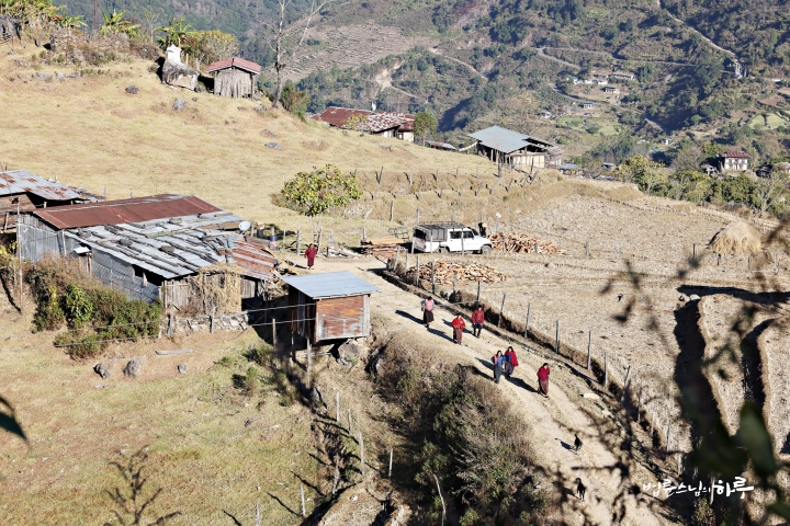 안녕하세요. 부탄답사 11일째 날입니다. 오늘은 싱칼(Shingkhar) 게옥의 왐링(Wamling), 츠리사(Thrisa), 라디(Radi), 님숑(Nimshong) 치옥을 방문하여 주민들과 대화를 나누었습니다.