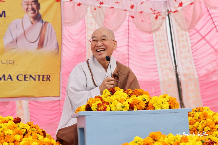“부처님의 발자취를 따라서 진행한 인도성지순례를 오늘 이렇게 잘 마치게 됐습니다. 요즘같이 바쁜 시대에 여러분께서는 많은 시간을 내고, 많은 돈을 들이고, 또 많은 고생을 하셨습니다. 이 경험이 여러분들의 인생살이에 큰 공덕이 됐으면 좋겠습니다.