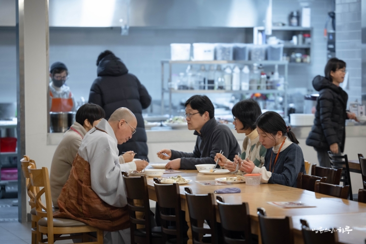 대중들은 모둠별로 모여 마음 나누기를 하고, 스님은 지하 1층 식당으로 향했습니다. 대중들과 함께 점심식사를 한 후 시국 현안에 조언을 구하는 사회 인사를 만났습니다.