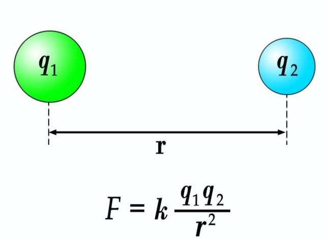 예를 들어 산소의 원자핵은 8개의 양성자와 8개의 중성자로 구성되어 있습니다. 그 거리는 엄청나게 짧은 거리입니다. 학교 다닐 때 전자기력이 무엇인지 배웠죠? 두 전하 q1과 q2 사이의 거리가 r일 때 두 전하 사이에 작용하는 전자기력 F는 쿨롱 법칙에 의해 F = k(q₁q₂)/r² 입니다. 두 전하 사이에 작용하는 전자기력의 크기는 두 전하의 곱에 비례하고, 그 거리의 제곱에 반비례한다는 것입니다.