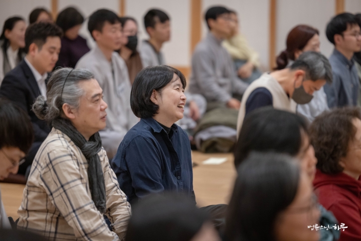 법문이 끝나자, 대중들은 모둠별로 모여 마음 나누기를 하고, 스님은 설법전을 나와 정토회관으로 향했습니다.