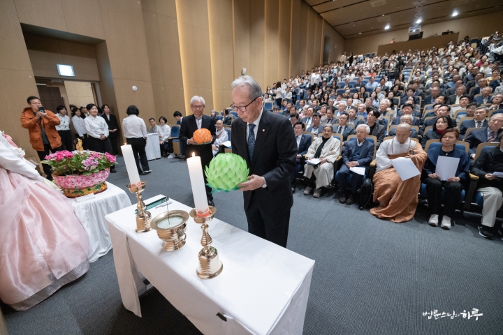 “세상에는 잊히지 않는 이름도 있고, 차라리 잊고 싶거나 손가락질받는 이름도 있습니다. 인류 역사에는 결코 잊을 수 없는 부처님과 같은 위대한 현자가 계신 반면, 지금 우리 사회에는 그 잘못과 허물을 기록으로 남겨 반드시 책임을 물어야 할 인물들도 많아지고 있습니다. 그래서 더욱 부처님의 가르침이 소중하게 느껴지고, 부처님을 찬탄하지 않을 수 없는 것입니다. 오늘 여기 함께하신 모든 귀빈 여러분은 부디 부처님의 가르침처럼 누군가 여러분의 이름을 부를 때 그것이 기쁨이 되고, 누군가의 위안이 되는 그런 삶을 살아가시길 바랍니다. 괴로움이 없고, 자유로우며 모두 건강하시기를 기원합니다.”