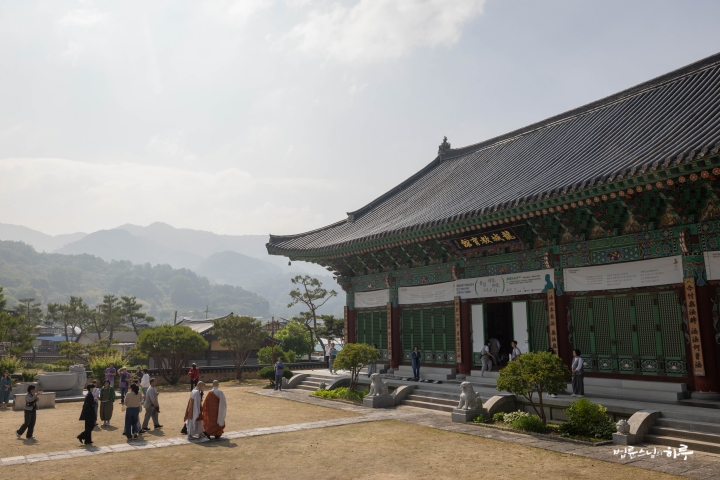 다례제를 마치고 대웅전을 참배한 후 물빛공원에 건립 중인 용성 기념관 공사 현장을 둘러보았습니다.
