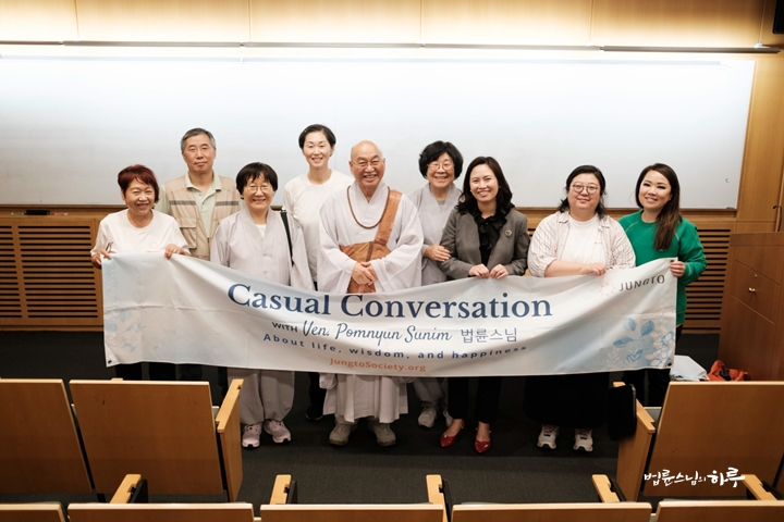 오늘 강연을 준비해 주신 인류학과 김수정 교수는 뉴욕에서 대학원생 시절 맨해튼 법당 행사에서 법륜스님을 처음 만났고, 2021년에 발간된 법륜스님과 정토회에 관한 북 챕터를 쓴 저자이기도 합니다. 작년에는 교수님이 가르치는 세미나 수업 시간에 정토회와 법륜스님에 대한 소개를 하기도 했습니다.