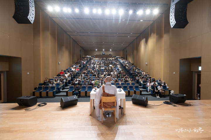 “할 수 있을 것 같습니다. 감사합니다. 강연을 시작하기 전에 시리아 난민이랑 미얀마 지진 얘기를 하셔서 ‘이런 질문을 해도 되나, 호강에 겨운 소리 아닌가’ 싶어서 조금 망설여졌습니다. 그래도 스님 말씀을 듣고 나니 잊고 있었던 감사함을 다시 한번 생각할 수 있게 되었습니다.”