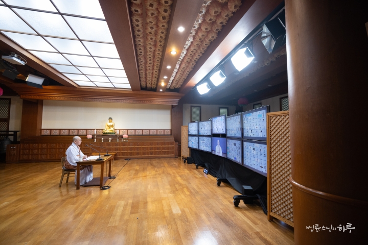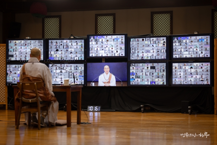 각종 행사로 점점 더 바빠지는 시기이지만 무엇보다 정진을 가장 우선으로 하기로 정일사 입재 법문을 마쳤습니다. 이어서 누구든지 손들기 버튼을 누르고 활동하면서 겪는 어려움에 대해 질문을 했습니다. 한 시간 동안 대화를 나눈 후 11시 30분이 되어 생방송을 마쳤습니다.