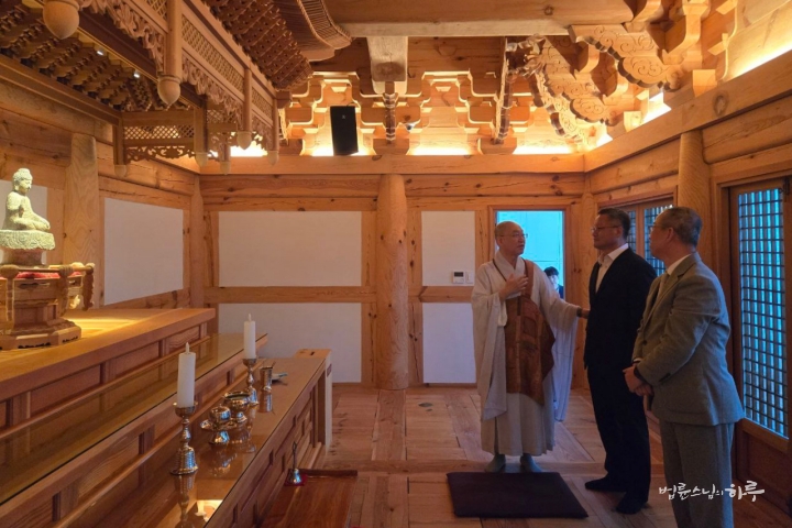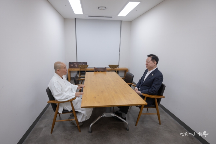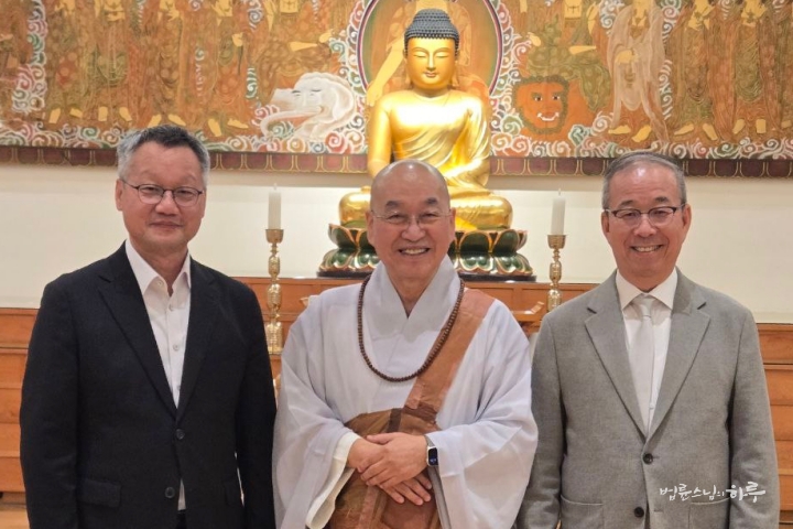 오후 4시에는 윤재웅 동국대학교 총장님과 박기련 건학위원회 사무총장님이 스님을 찾아왔습니다. 총장님은 스님을 동국대학교로 모실 테니 학생들을 위해서 좋은 강의를 해주십사 요청했습니다. 스님은 그 뜻에 감사의 인사를 전하면서도 정중하게 거절했습니다. 대신 매년 두 차례 동국대학교 학생들과 교직원들을 위해 즉문즉설 법회를 해주겠다고 약속했습니다. 면담을 마친 뒤, 함께 3층 설법전과 15층 옥상 법당을 참배하고 기념사진을 찍었습니다.