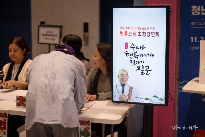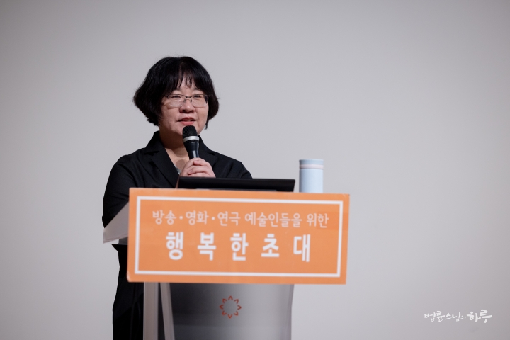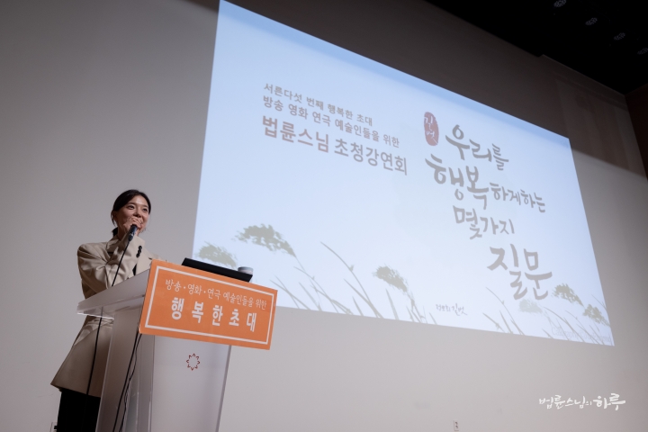 안녕하세요. 오늘은 정토회 전법회원들을 위한 법회와 방송·영화·연극·예술인들의 모임인 '길벗'에서 주관하는 법륜스님 초청 강연회가 열리는 날입니다.