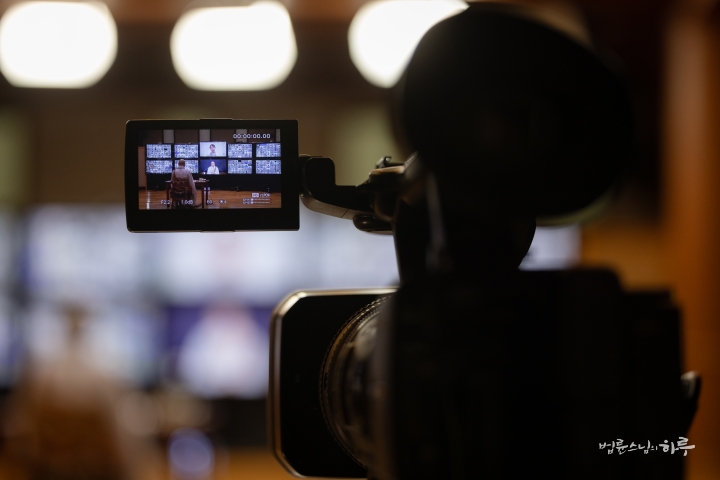 미팅을 마치고 오전 10시부터는 정토회관 방송실로 이동하여 전법회원 법회 생방송을 했습니다. 오늘 전법회원 법회는 대중부 활동가의 수련 프로그램인 정일사 입재식을 겸해서 진행하기로 했습니다.