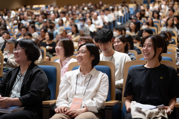 스님과 노희경 작가님은 무대 앞에 서서 강연장 밖으로 나가는 참가자 한 명 한 명과 악수를 나누며 감사 인사를 했습니다.