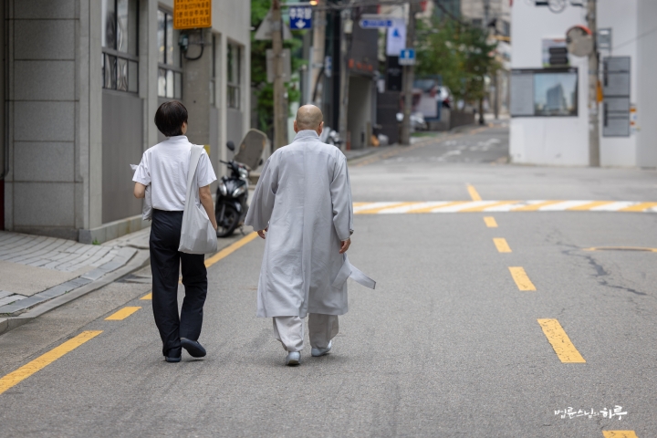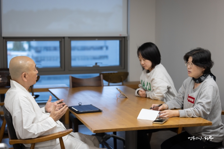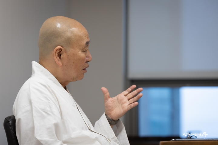 스님은 새벽 수행과 명상을 마친 후 정토사회문화회관으로 향했습니다. 사무실에서 업무를 보다가 오전 9시 30분부터 JTS 실무자들과 회의를 했습니다.