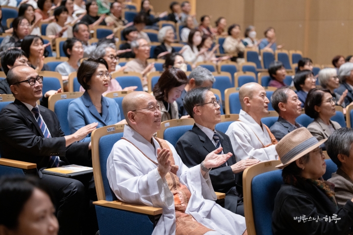 스님은 참석한 내빈들, 발표자들과 차담을 나눈 후 함께 대강당으로 이동했습니다.
