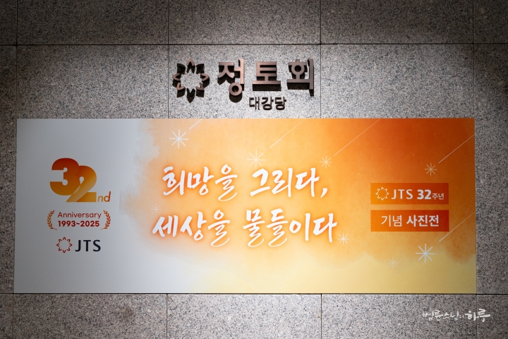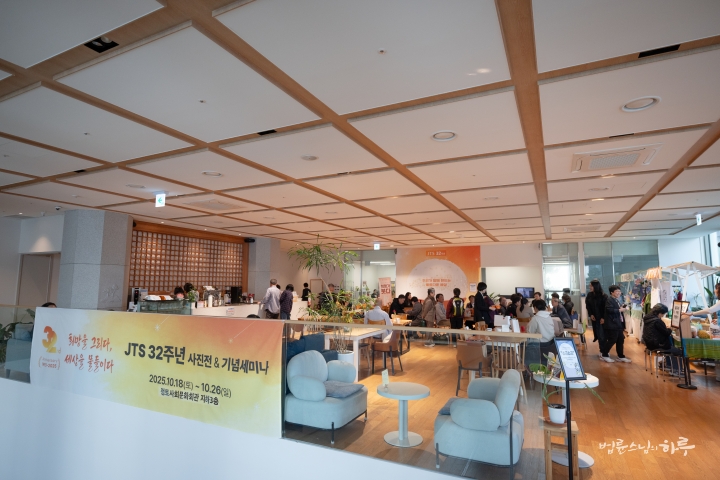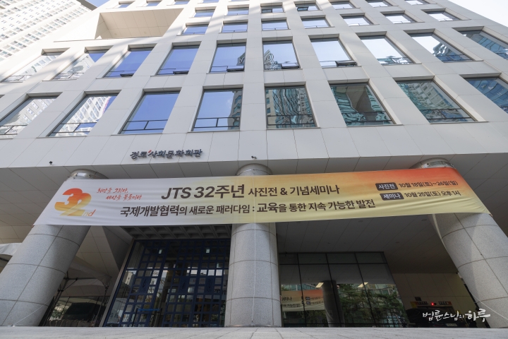 안녕하세요. 오늘은 정토사회문화회관 지하 대강당에서 JTS 설립 32주년 기념 세미나가 열리는 날입니다.