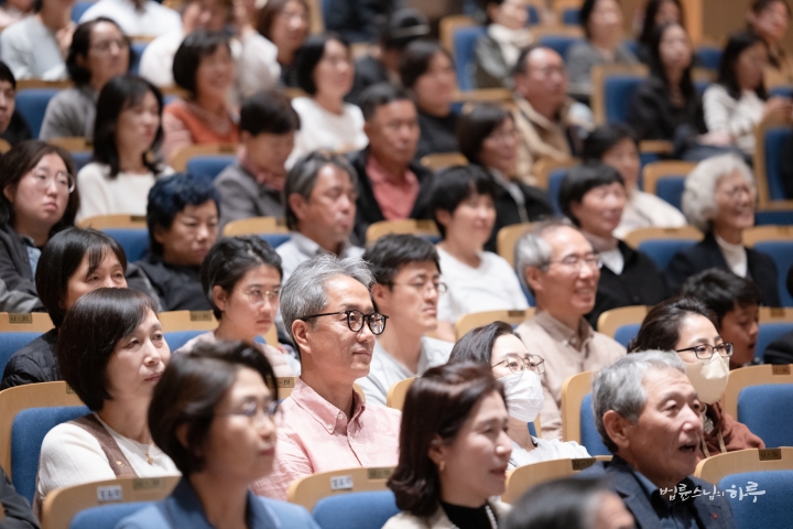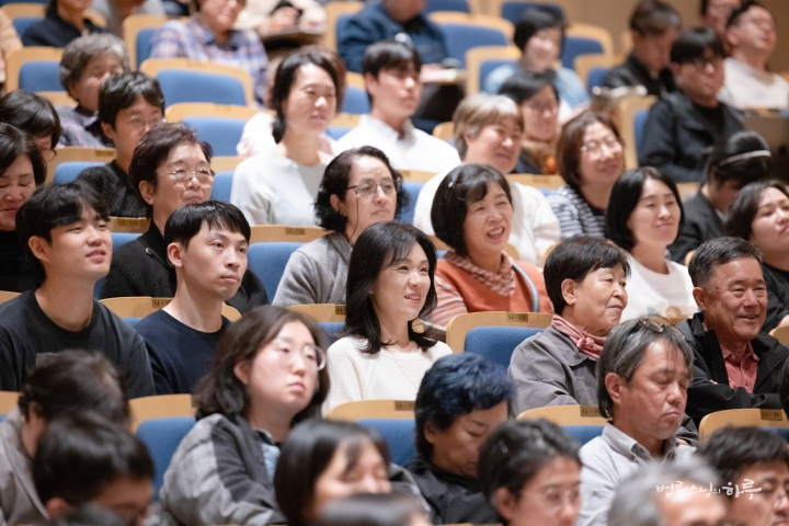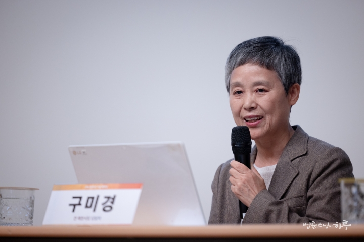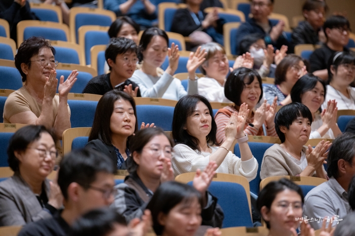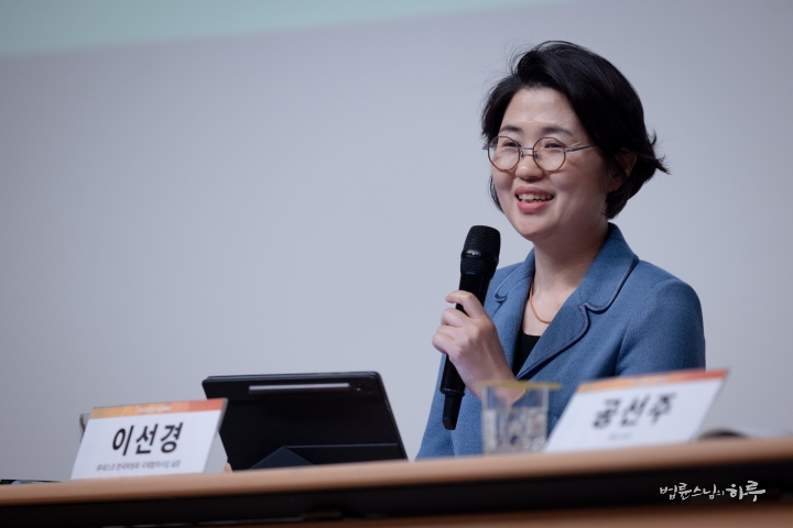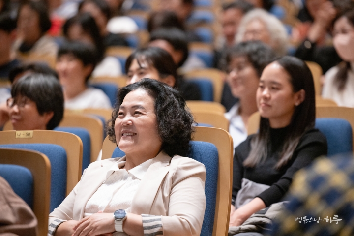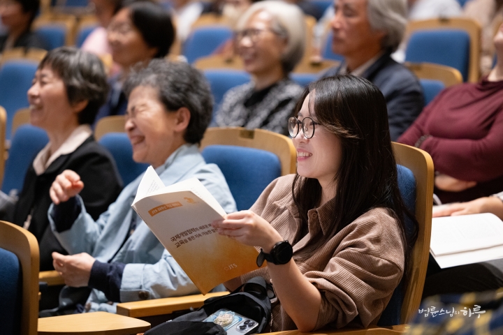 “오늘 이 자리에 오기 전까지만 해도 전할 이야기를 어느 정도 준비하고 있었습니다. 그러나 법륜스님의 기조 발제와 1부 순서를 들으면서, 제가 어떤 이야기를 어떻게 이어 가야 할지 순간 막막한 마음이 들었습니다. 저는 평생 교육을 연구해 온 학자로서, 땀으로 세상을 바꾸고 마음으로 실천하는 분들 앞에서 제 이야기가 어떻게 닿을 수 있을지 자신이 없었습니다. 그럼에도 오늘 이 자리에 서야 할 이유가 있다고 생각했습니다. 제 말 중 한 구절이라도 마음에 와닿는 부분이 있다면, 그 자체로 감사한 일이라 생각합니다.”
