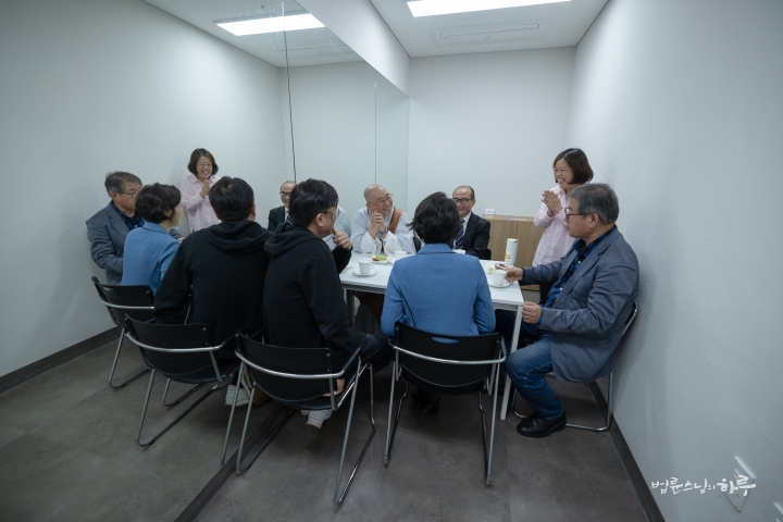 스님은 새벽 수행과 명상을 마친 후 평화재단으로 향했습니다. 사무실에서 업무를 보다가 오전 10시부터 외교 안보 전문가들과 미팅을 했습니다.
