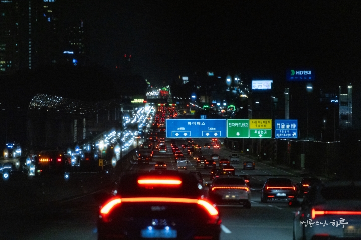 해가 저물고 저녁 6시에 서울을 출발하여 두북수련원으로 향했습니다.