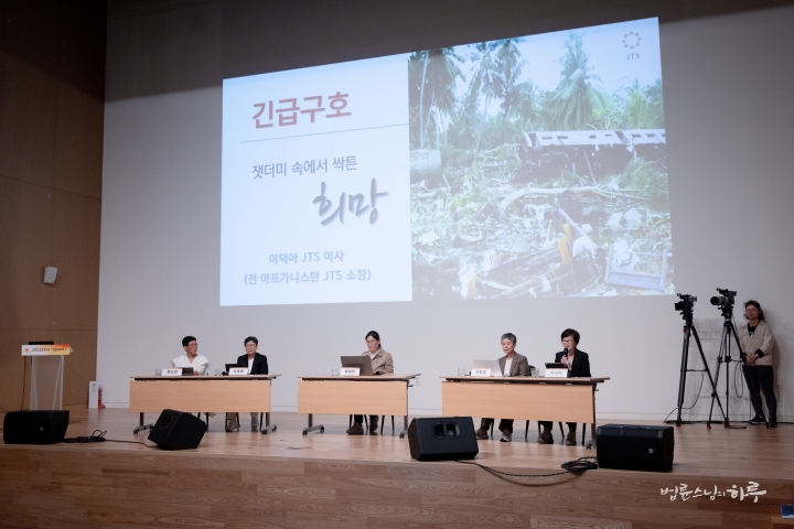 다음은 아프가니스탄JTS 소장을 역임하였고 현재는 JTS 이사로 있는 이덕아 님이 ‘잿더미 속에서 싹튼 희망’을 주제로 긴급 구호 사업의 성과에 대해 발표했습니다.